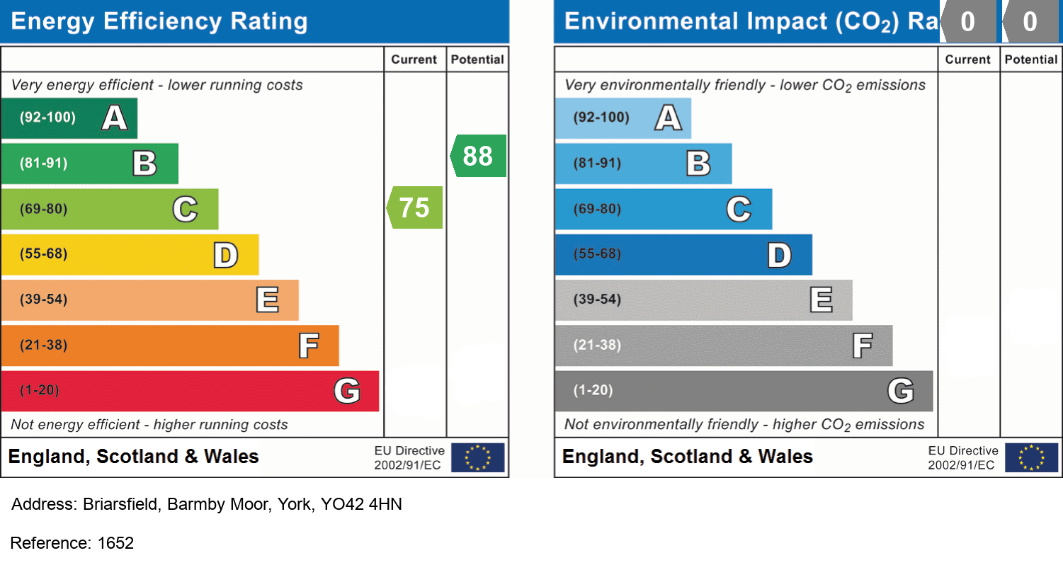 On entering Briarsfield you follow the road down and you will see an opening on the left which leads to the bungalow. There is a gravelled drive to the front that provides parking for two cars and a brick built covered car port to the right hand side that provides further parking.